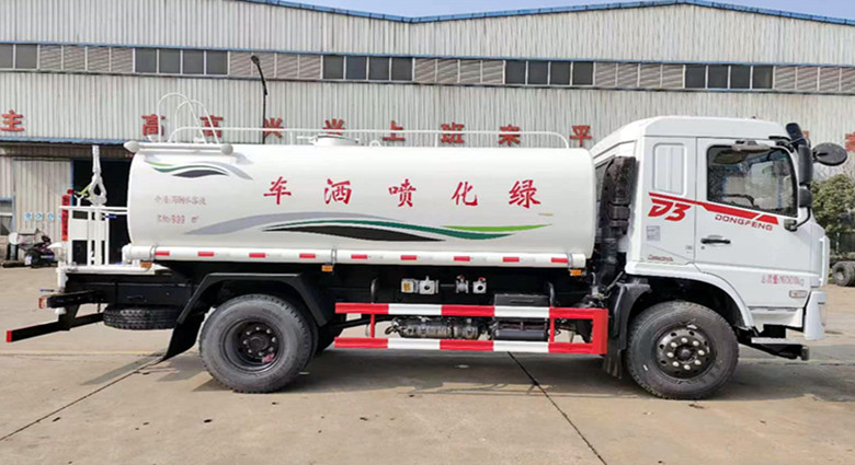 上裝配置:罐體采用4mm厚優(yōu)質(zhì)碳鋼板制作,容積約12.6立方,底板加厚,億豐60-90型優(yōu)質(zhì)大功率專用灑水泵,取力器,雜物過濾網(wǎng),國(guó)標(biāo)通用65型消防接口、1套自流球閥系統(tǒng),兩根引水鋼絲膠管,標(biāo)配前對(duì)沖、后灑、后側(cè)噴,罐體右后高位花灑,高壓軸承水炮,一次成型沖孔平臺(tái),2個(gè)安全示廓燈,LED高亮度邊燈及示廓燈,可視水量管,其它灑水車標(biāo)準(zhǔn)配置。