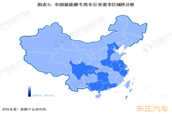 中國新能源專用車行業(yè)具有明顯的區(qū)域性。在供給方面,新能源專用車制造企業(yè)主要集中在廣西、福建等沿海地區(qū),供給區(qū)域性明顯;在需求方面,新能源專用車制造企業(yè)需求主要集中在東部地區(qū)與中部地區(qū)并逐漸向全國分散。