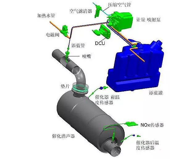 用戶國5發(fā)動(dòng)機(jī)采用SCR選擇性催化還原技術(shù),可滿足國5的排放法規(guī)。柴油機(jī)所產(chǎn)生的微粒(PM)和氮氧化物(NOx)是排放中兩種最主要的污染物。從目前降低汽車尾氣排放的技術(shù)途徑來看,要達(dá)到國4、國5排放標(biāo)準(zhǔn),一般不再從發(fā)動(dòng)機(jī)本身的結(jié)構(gòu)方面采取措施,通常是采取排氣后處理的方式來降低污染物的排放量,而尿素-SCR 選擇性催化還原法是最具現(xiàn)實(shí)意義的方法。
