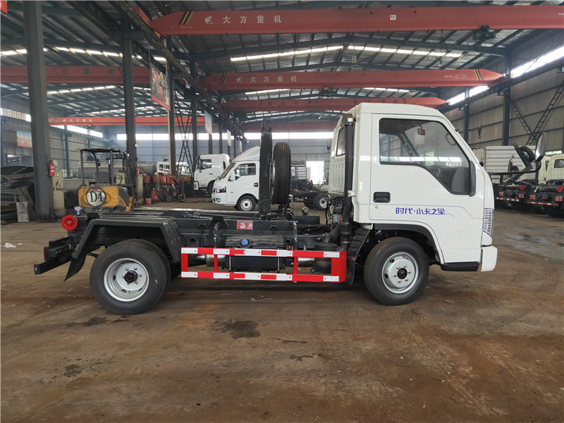 勾臂垃圾車(chē)【車(chē)廂可卸式垃圾車(chē)】車(chē)體和垃圾箱可完全分離,由液壓系統(tǒng)來(lái)完成收箱/放箱,在平日里可將車(chē)載垃圾箱放置到各個(gè)垃圾收集點(diǎn),待垃圾收集滿(mǎn)后,該車(chē)可直接開(kāi)赴收集點(diǎn),通過(guò)液壓系統(tǒng)的操控,可將垃圾車(chē)后座上加裝的勾臂放下,掛住站內(nèi)箱體前端的連接點(diǎn),將垃圾箱拉**車(chē)體的后座上,此時(shí)即可開(kāi)動(dòng)車(chē)輛,將垃圾運(yùn)送垃圾處理站內(nèi),進(jìn)行自卸式傾倒,優(yōu)點(diǎn)就是可一車(chē)配多斗,一輛車(chē)就可以維持?jǐn)?shù)個(gè)垃圾收集站的運(yùn)轉(zhuǎn),效率高,且箱體為密封式設(shè)計(jì),不會(huì)造成二次污染。