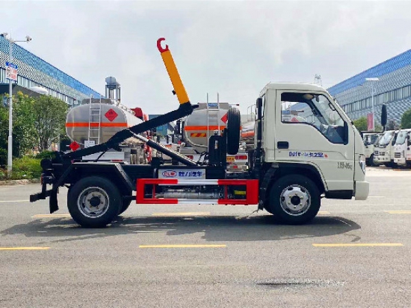 勾臂垃圾車【車廂可卸式垃圾車】車體和垃圾箱可完全分離,由液壓系統(tǒng)來完成收箱/放箱,在平日里可將車載垃圾箱放置到各個垃圾收集點,待垃圾收集滿后,該車可直接開赴收集點,通過液壓系統(tǒng)的操控,可將垃圾車后座上加裝的勾臂放下,掛住站內(nèi)箱體前端的連接點,將垃圾箱拉**車體的后座上,此時即可開動車輛,將垃圾運送垃圾處理站內(nèi),進行自卸式傾倒,優(yōu)點就是可一車配多斗,一輛車就可以維持數(shù)個垃圾收集站的運轉,效率高,且箱體為密封式設計,不會造成二次污染。