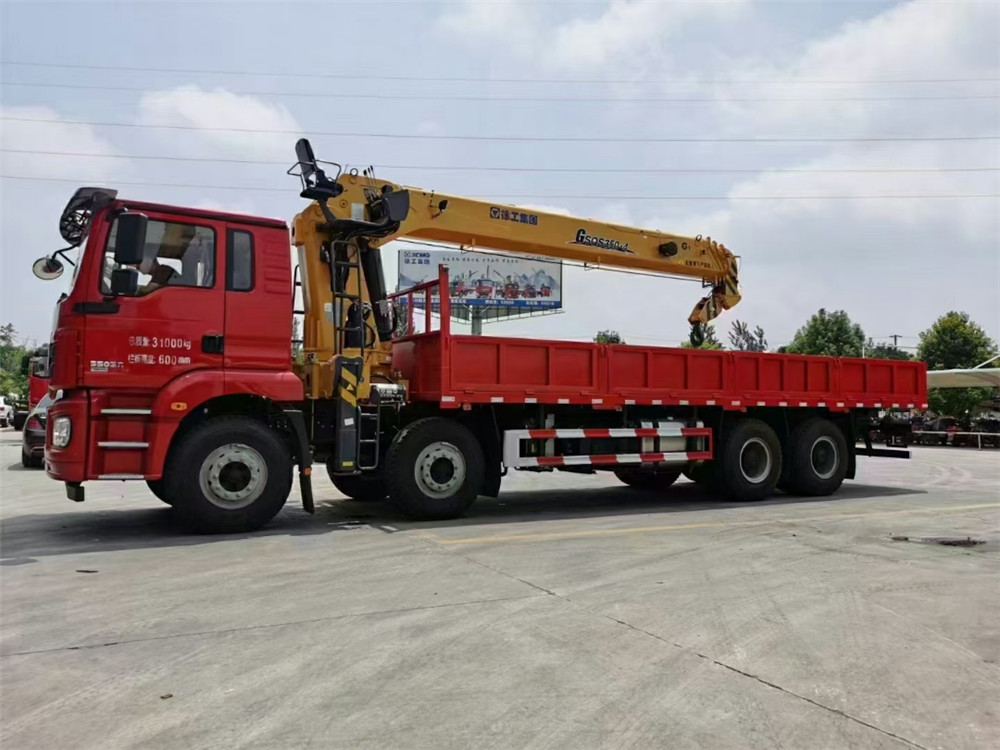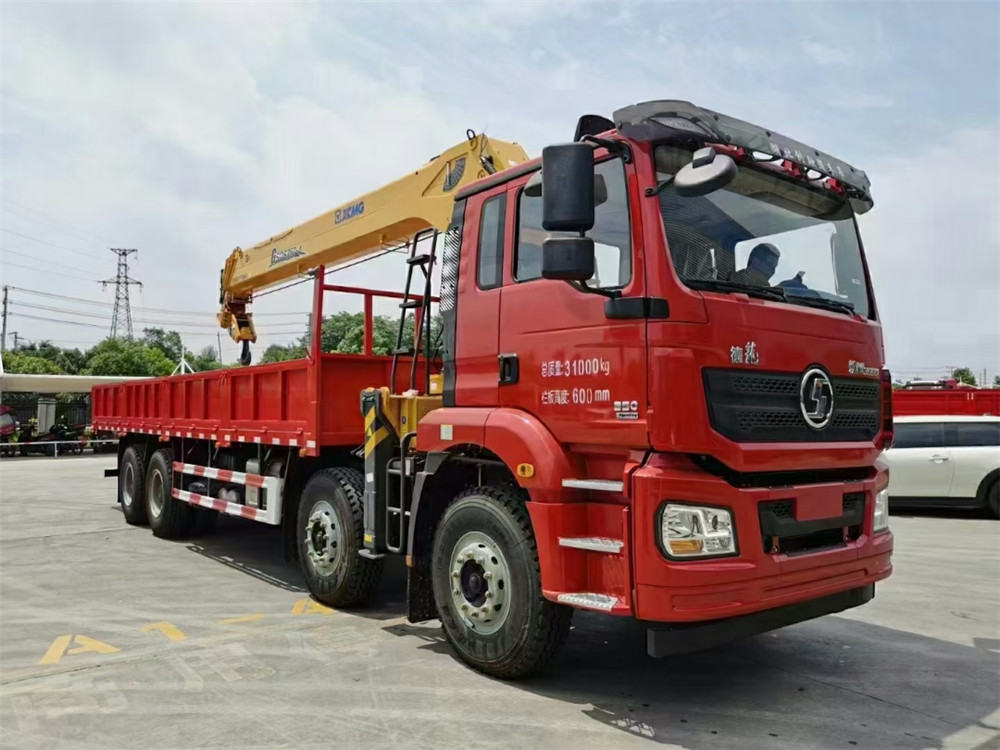 陜汽德龍新M3000國六前四后八 上裝徐工G系列14噸吊機采用陜汽德龍M3000平頂豪華駕駛室,濰柴350馬力,法士特十二檔變速箱帶高低速,308(8+5+8)通體三層加強梁,12.00R20鋼絲胎,前橋7.5T*2,后橋16T*2輪邊減速橋,軸距2100+4575+1400,帶氣囊座椅,,400鋁合金油廂,自動空調(diào),ABS,行車記錄儀遮陽罩 ,法士特原廠取力器,16**H免維護電池