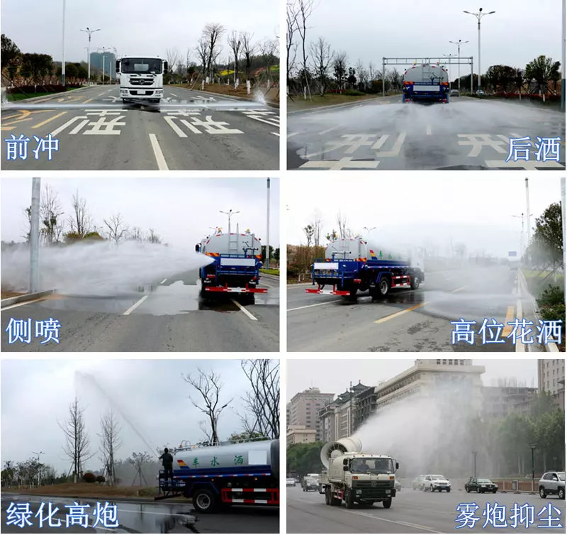上裝配置:罐體采用國標(biāo)Q235碳鋼板材制作,產(chǎn)品質(zhì)量成熟可靠,設(shè)計**合理,比同類灑水泵吸程遠(yuǎn)、壓力大、使用壽命長,可泵進(jìn)泵出。前沖、后灑、側(cè)噴、高位花灑、帶后工作平臺及綠化灑水高炮(可全方位旋轉(zhuǎn),可連續(xù)調(diào)成直沖狀、大雨、小雨、毛毛雨等),抑塵霧炮(可降塵、噴霧、消毒、打農(nóng)藥等),水位計,消防栓接口、快速接口、兩根輸水管,其余標(biāo)配。